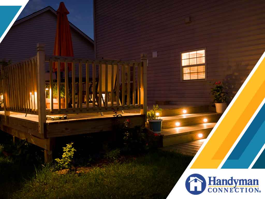 即使太阳,晚上你仍然可以享受你的甲板与正确的照明。灯在甲板上楼梯提供细微的光芒,也会让你的甲板上安全。字符串灯各种颜色可能调用圣诞节的精神,但您可以使用它们来添加一个有趣和节日氛围一年四季甲板。照明安装在柱帽,在栏杆上或地板上提供一个软辉光放松和舒适的撤退。